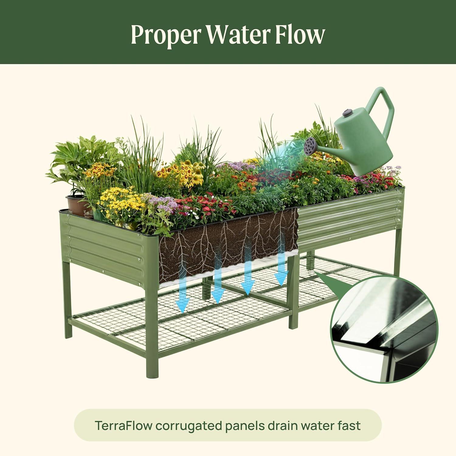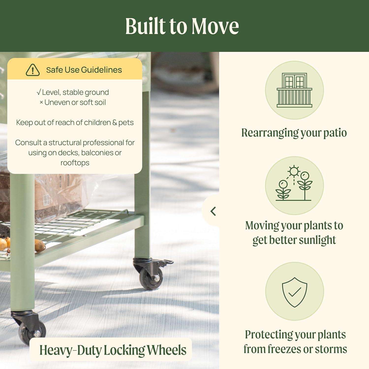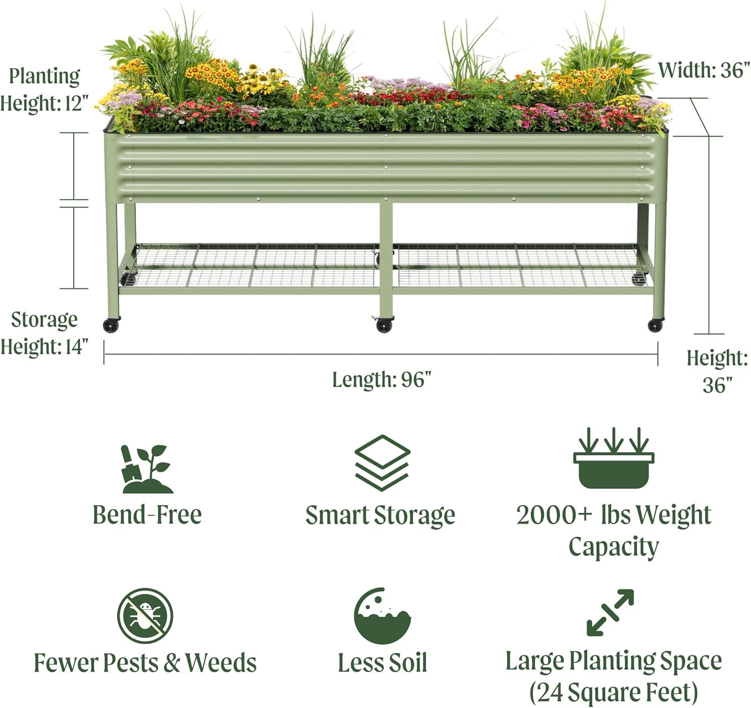 Rolling Elevated Raised Garden Bed – Jumbo Series, 3′ x 8′ Outdoor Planters Boxes with Legs & Storage Rack for Patio, 2000+ Lbs Weight Capacity, Raised Beds for Gardening Herbs Flowers, Modern Gray(Olive Green)