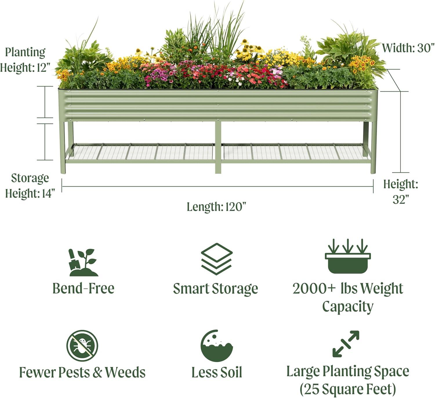 imageRolling Elevated Raised Garden Bed  Jumbo Series 3 x 8 Outdoor Planters Boxes with Legs ampamp Storage Rack for Patio 2000 Lbs Weight Capacity Raised Beds for Gardening Herbs Flowers Modern GrayOlive Green