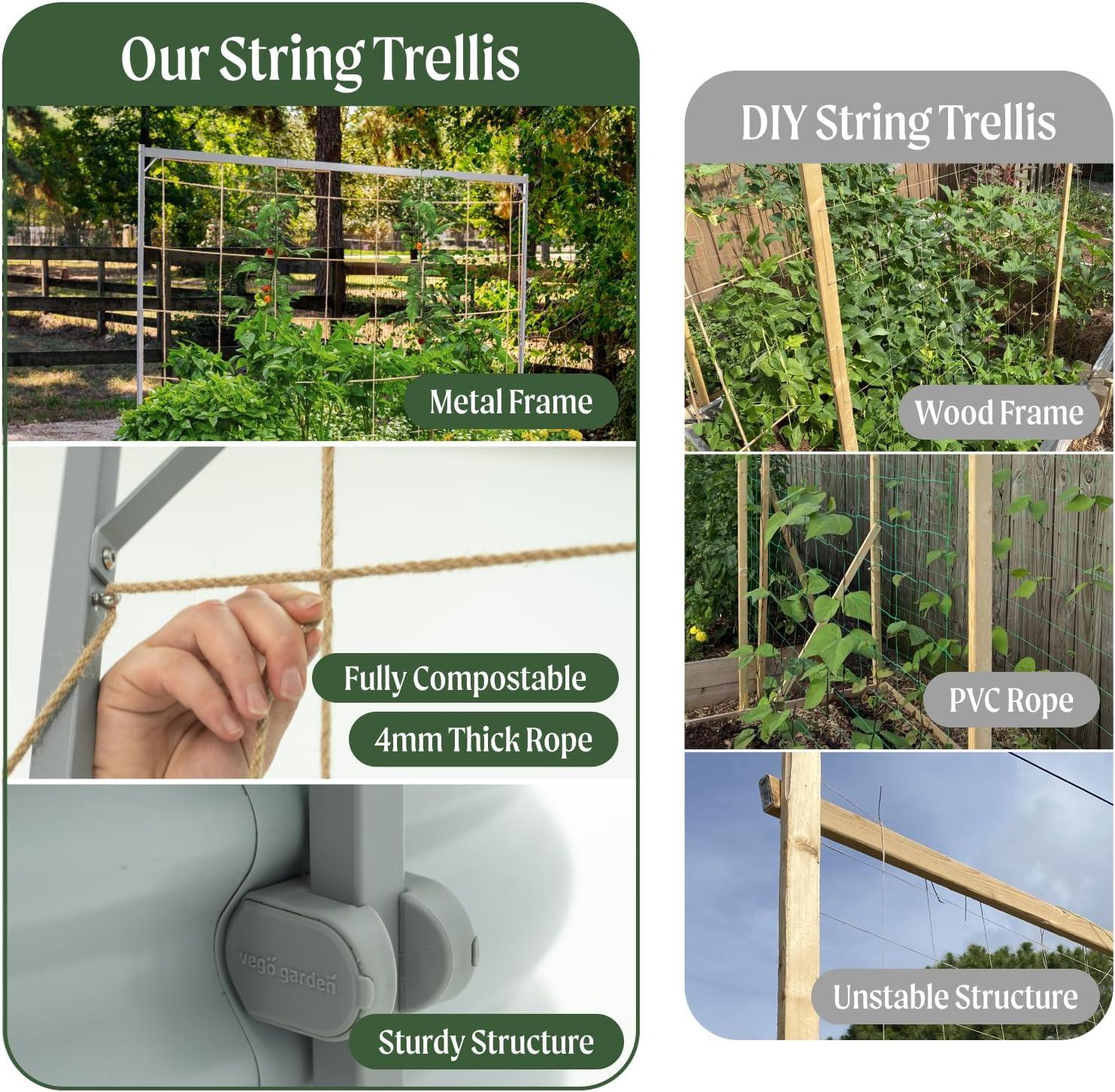 KEEP OUR EARTH IN MIND: The jute twine is fully compostable. When the growing season ends, you can effortlessly take down your trellis in less than 2 minutes by simply cutting the twine and composting it.