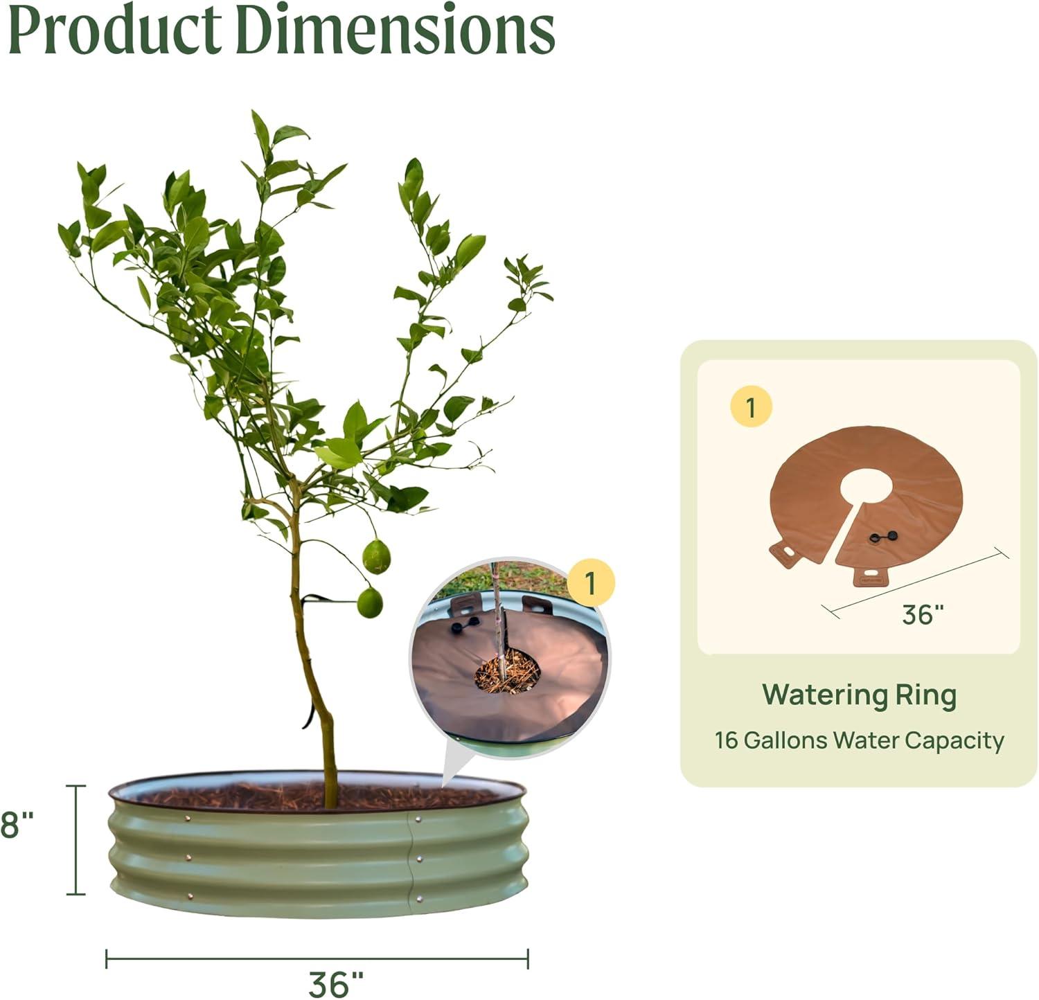 Vego garden Raised Garden Bed 8” Tall Tree Surround with Watering Ring, Olive Green(Olive Green)