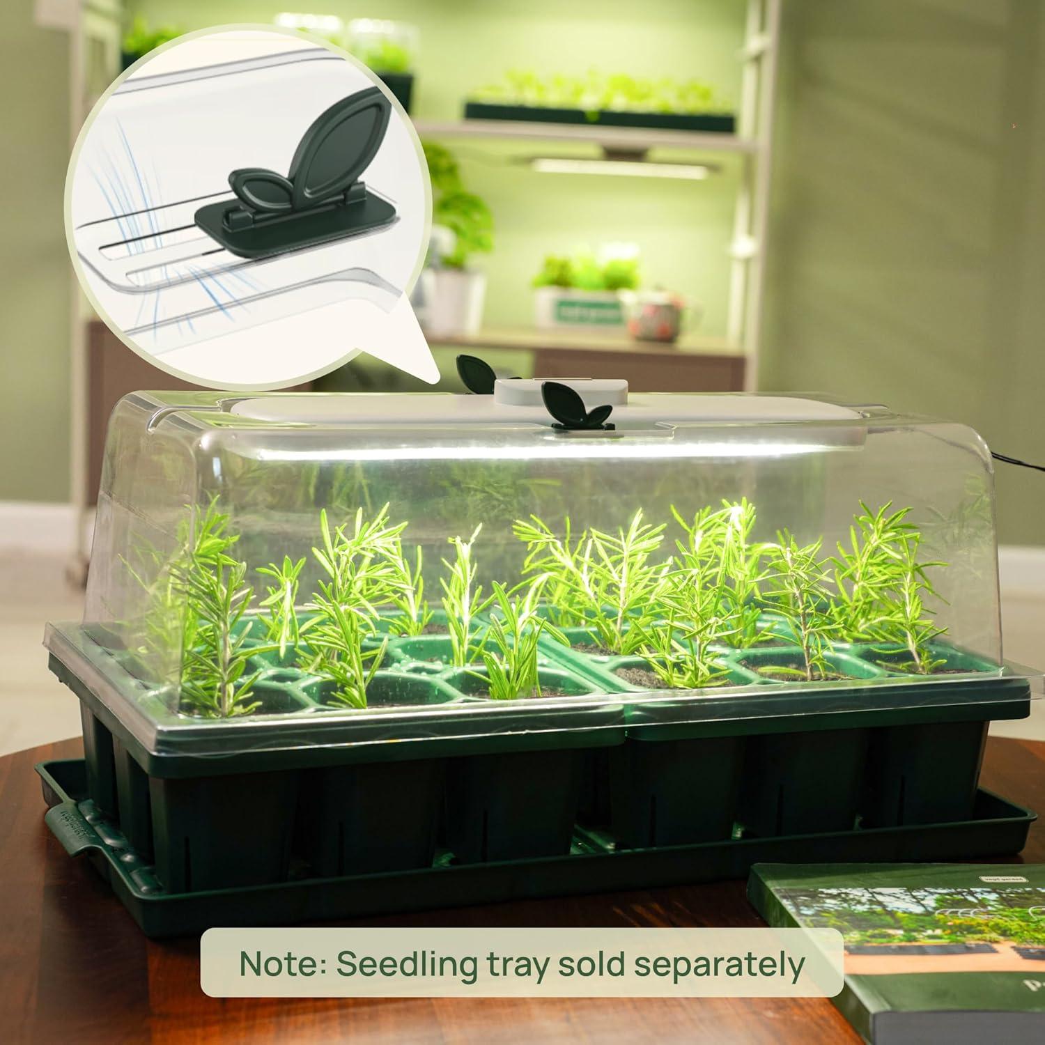 Vego garden Seedling Dome Cover 10" x 20" Food-Grade PET Plastic with Drip Irrigation & Vented Airflow with Grow Light